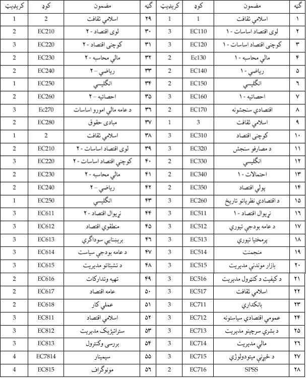 ادارې او منجمنټ څانګې تحصيلي نصاب